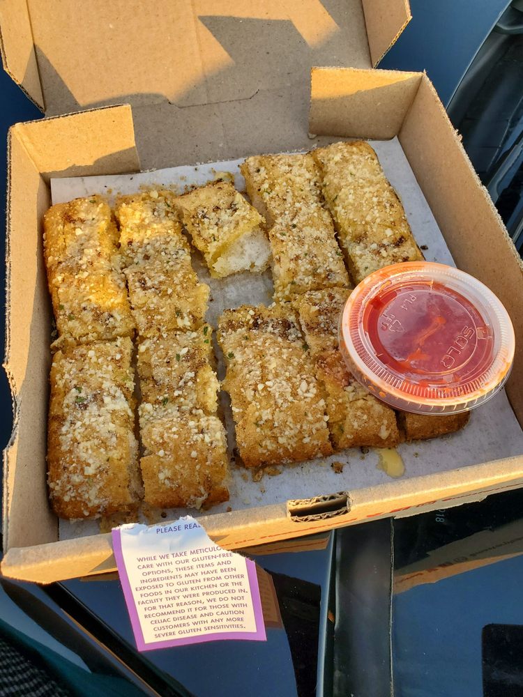 Our Famous Gluten-Free Detroit Style Crust baked & smothered in garlic butter & parmesan, served with a side of sweet crushed tomato sauce